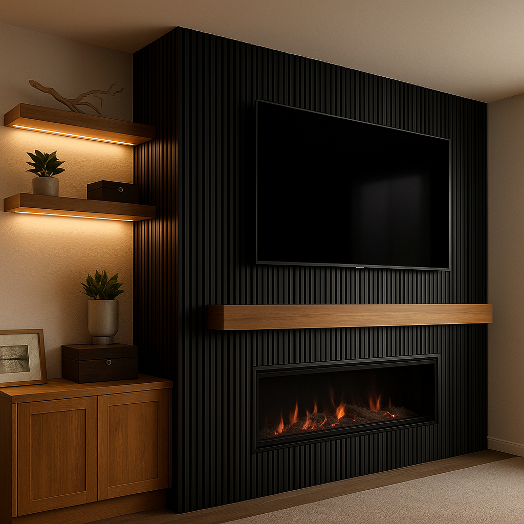 The cost of a media wall or accent wall varies depending on size, materials, and complexity. Basic installations typically start around $2,000-$5,000, while premium custom designs with integrated lighting and storage can range from $8,000-$15,000 or more. We provide detailed quotes after an in-home consultation.